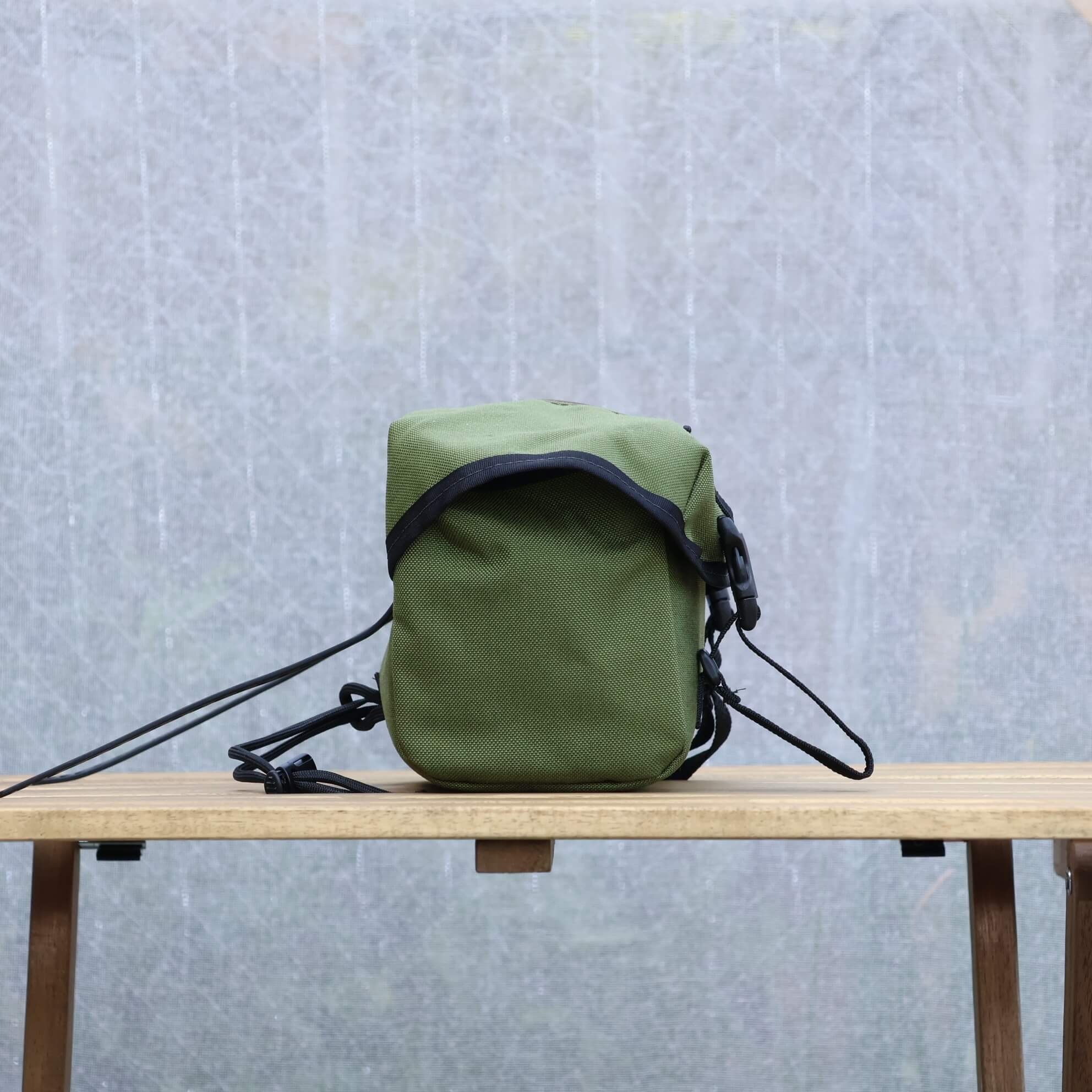 小さく折りたためるMusetteバッグが付属しており、ちょっとした買い物や、ライド中に自転車から離れるときの貴重品入れとしても便利です。もちろんこのバッグもハンドメイド。