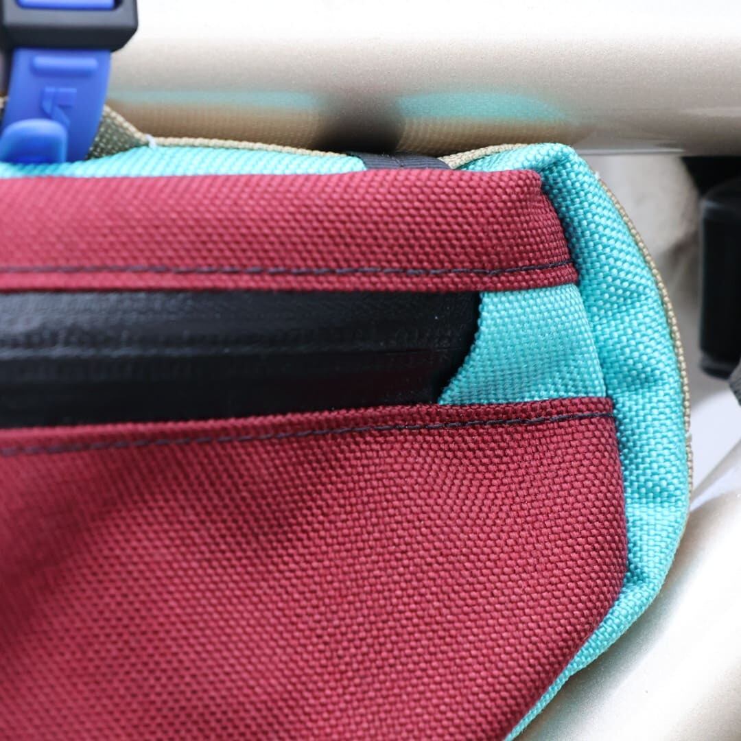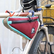 本体を囲むウェビングテープと、付属の5本のベルクロで、取り付けの自由度が高く、多くのフレームサイズに合うかと。ダブルジッパーは左右どちらからでもスムーズに開閉でき、止水仕様なので急な天候の変化にも頼りになります。初めてのフレームバッグにおすすめ。