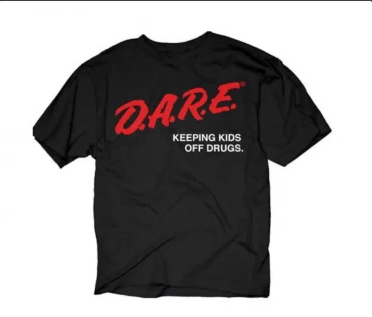 アメリカでは1980〜90年代にかけて、「D.A.R.E.(Drug Abuse Resistance Education)」という麻薬防止教育プログラムが全国的に展開されていました。学校や警察が連携し、「薬物にノーと言おう」という標語を広める活動です。Tシャツやステッカー、バンパーステッカーまで出回り、いまでも古着屋でそのロゴを見かけることがあります。