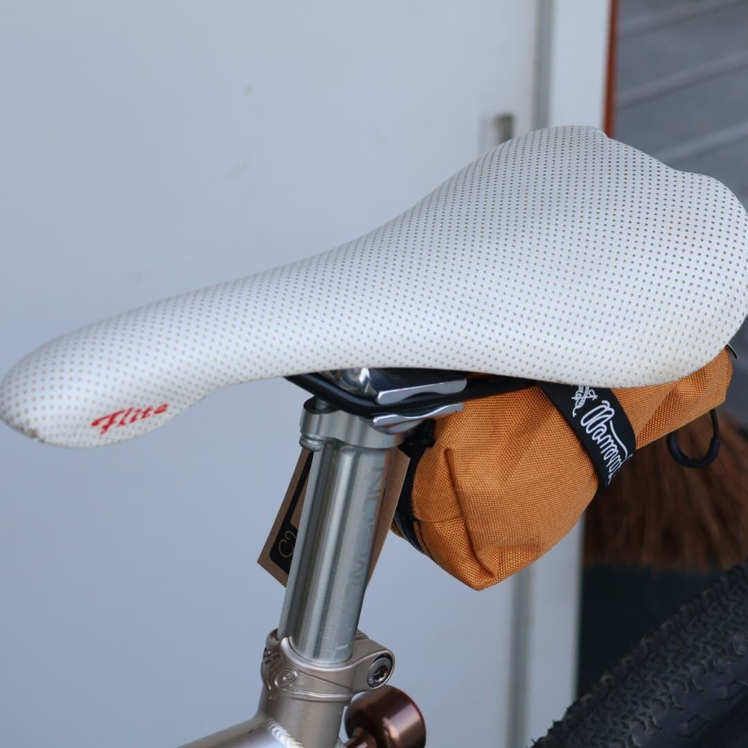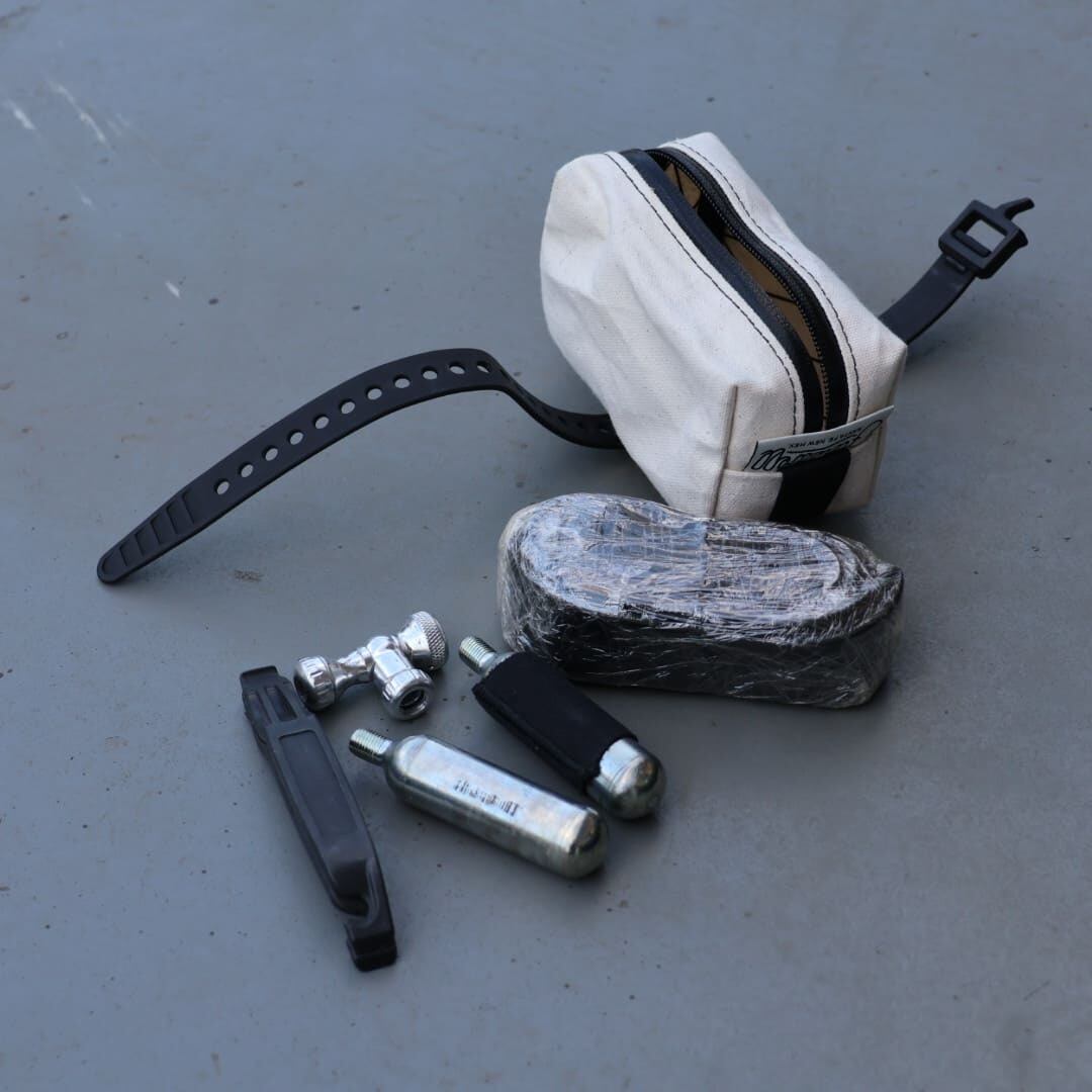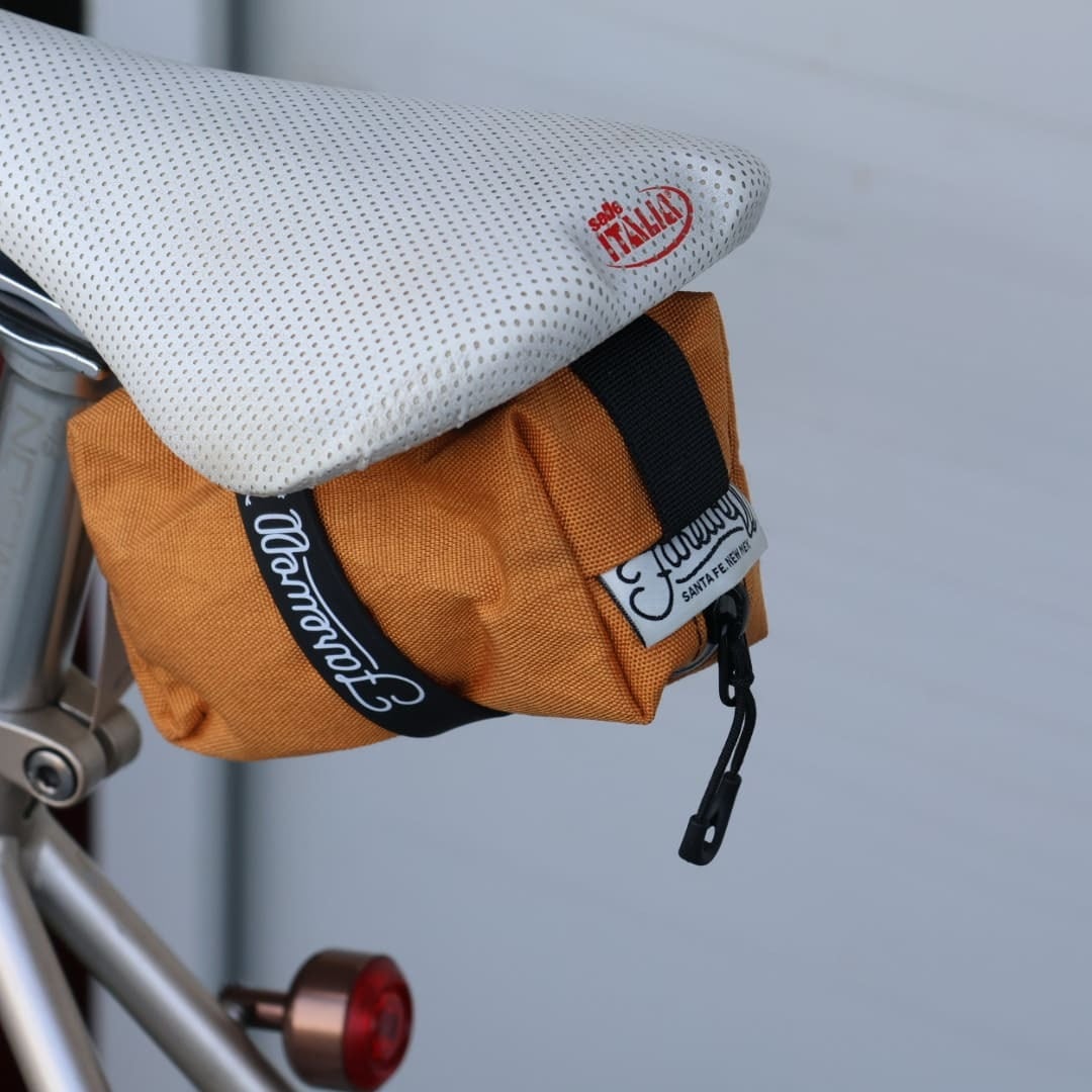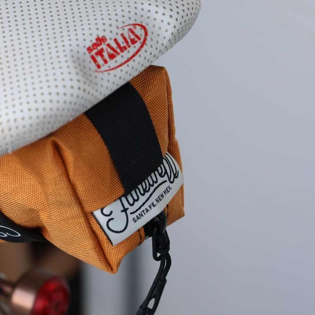 いつものライドに、少しのゆとりを。必要なものだけを持ち運ぶためのバッグです。ニューメキシコ・サンタフェ発のブランド「Farewell」による小さなサドルバッグで、チューブやCO2ボンベなどのツールが収まります。