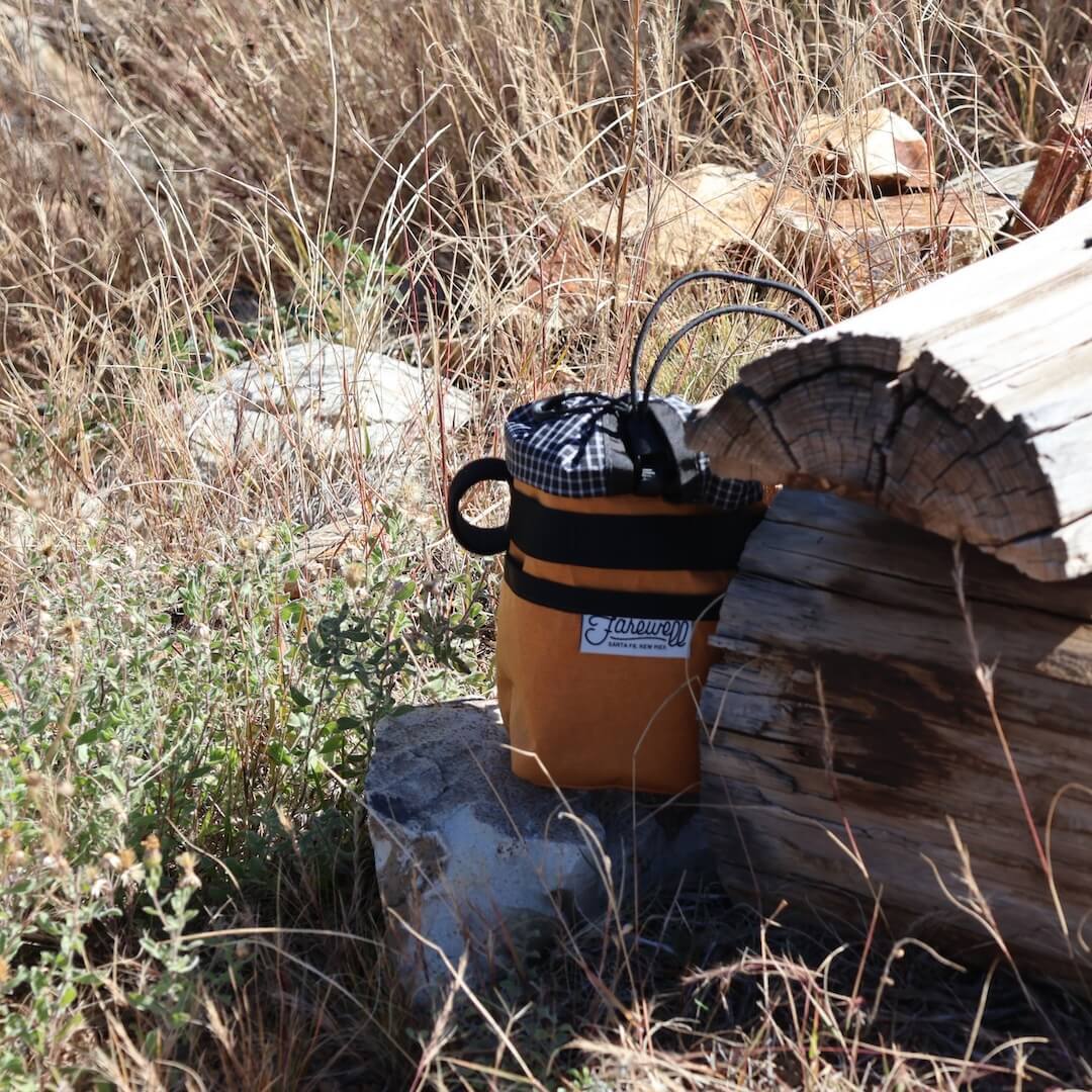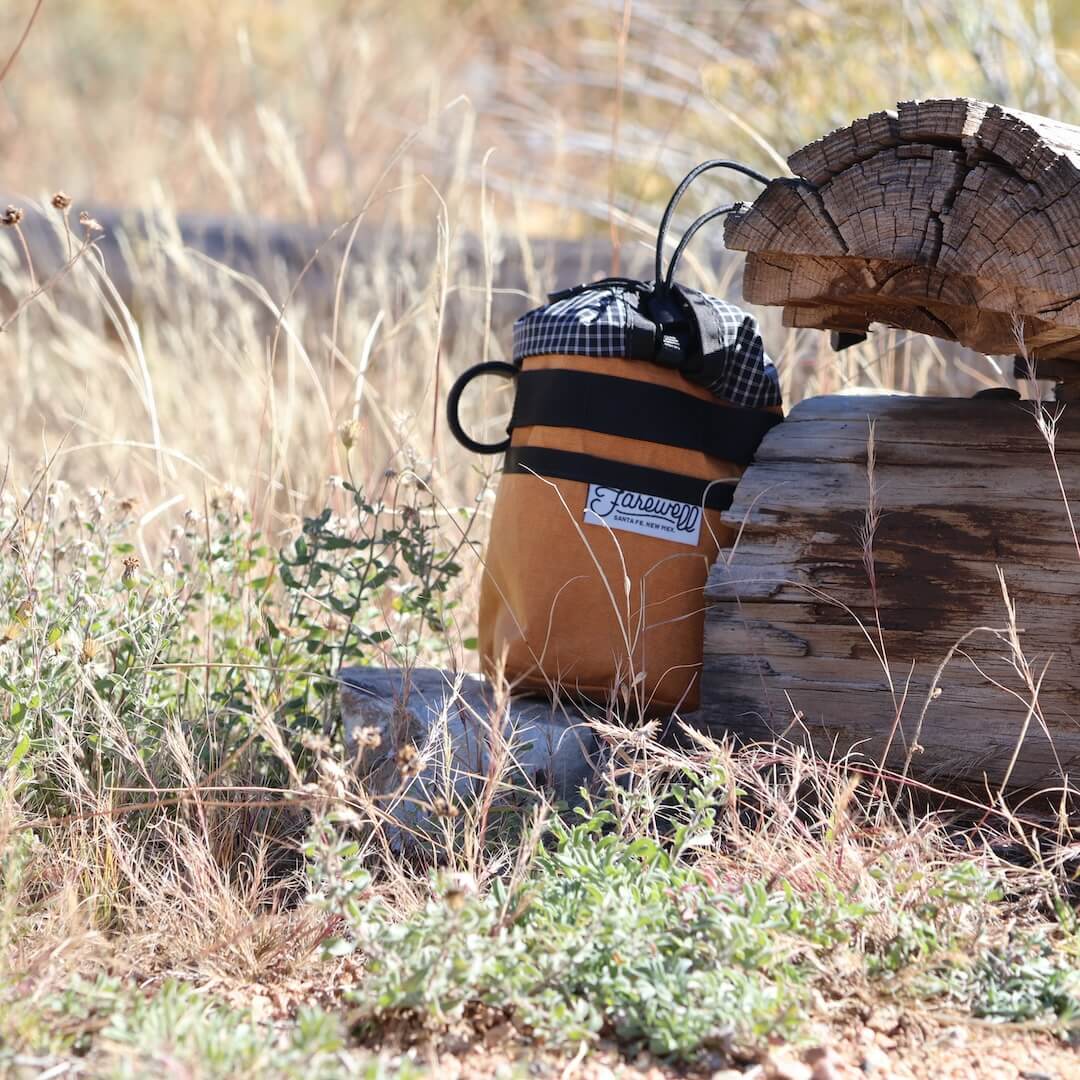 ニューメキシコ州サンタフェのハンドメイドブランド「Farewell」のステムバッグ。片手で開閉でき、1Lのナルゲンボトルが収まる十分な容量。Southwestの乾いた空気感がお好きな方へ。