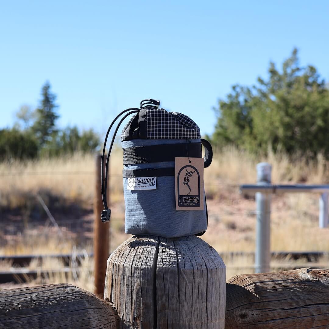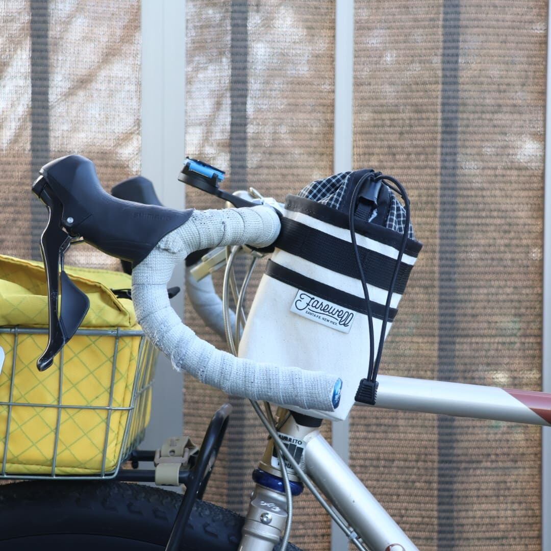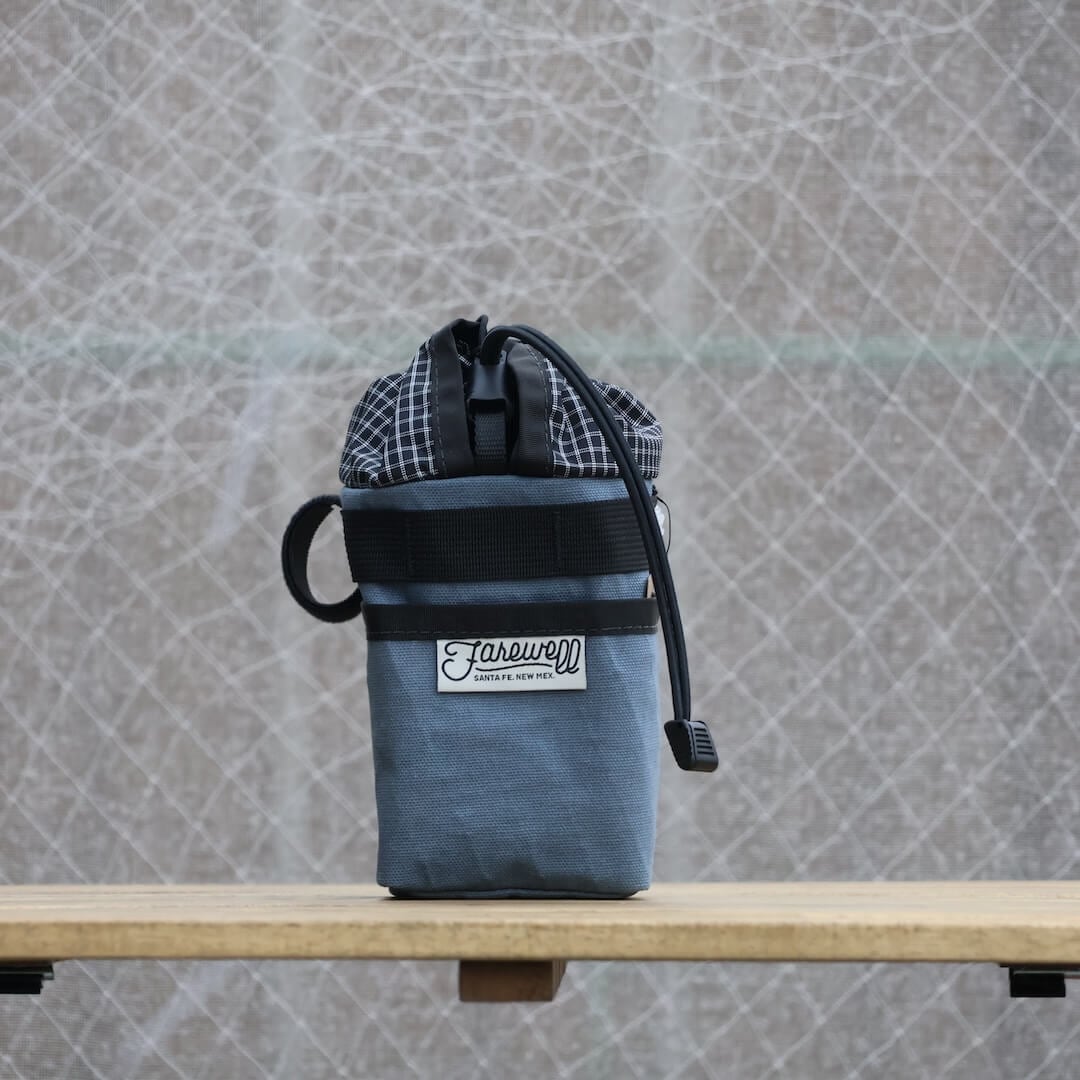 ニューメキシコ州サンタフェのハンドメイドブランド「Farewell」のステムバッグ。片手で開閉でき、1Lのナルゲンボトルが収まる十分な容量。Southwestの乾いた空気感がお好きな方へ。
