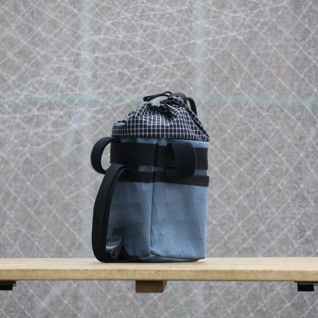 外周をぐるりと囲むポケットは、鍵や小物をさっと入れられる構造。V2から追加された底部のハトメ穴により、水が抜けやすく、日本の雨の多い環境でも安心して使えます。容量は1Lのナルゲンボトルがちょうど収まるサイズ感で、固定は2本のベルクロストラップと補助ストラップによって安定。取り付け方法や使い方については、ページ下部の動画も参考にしてみてください。