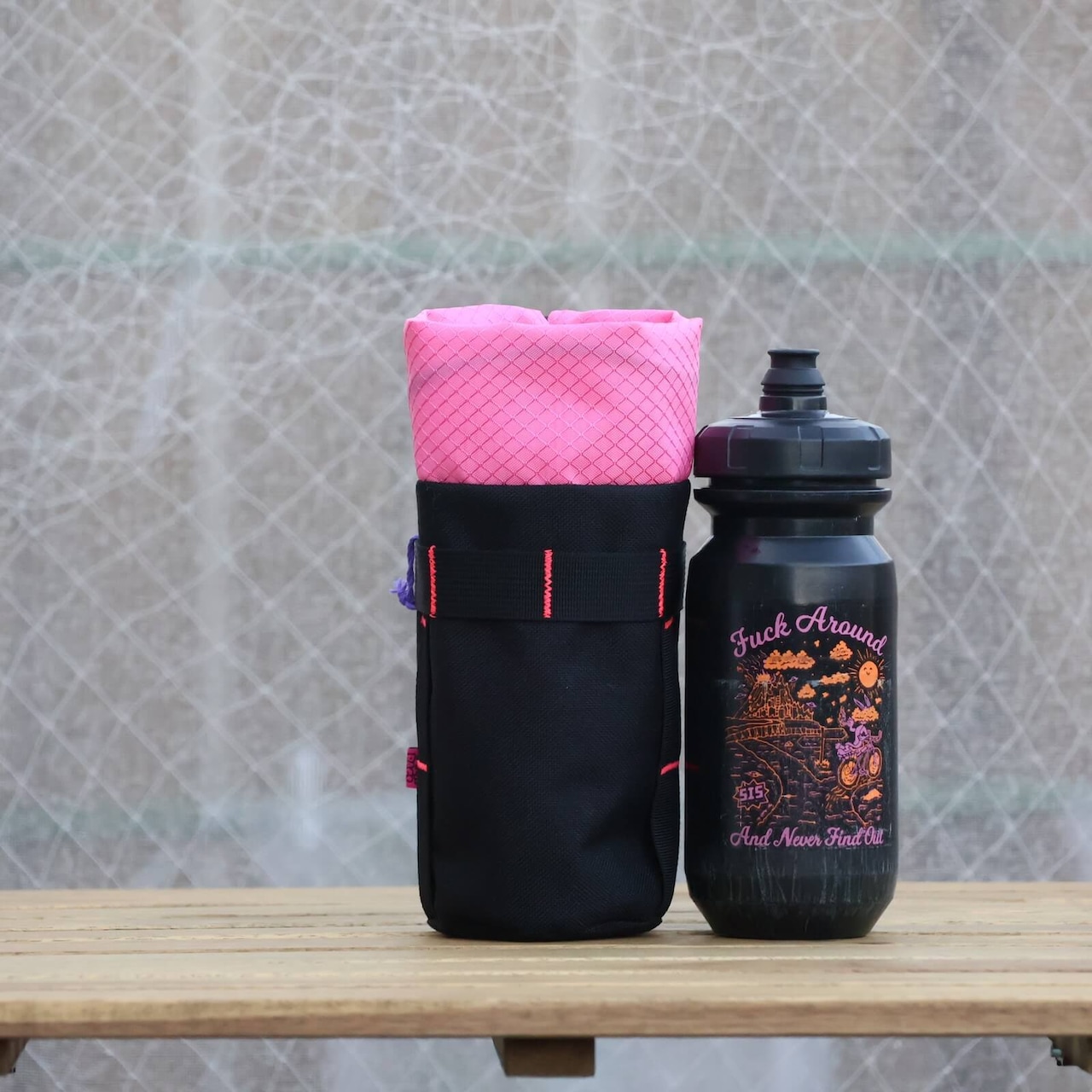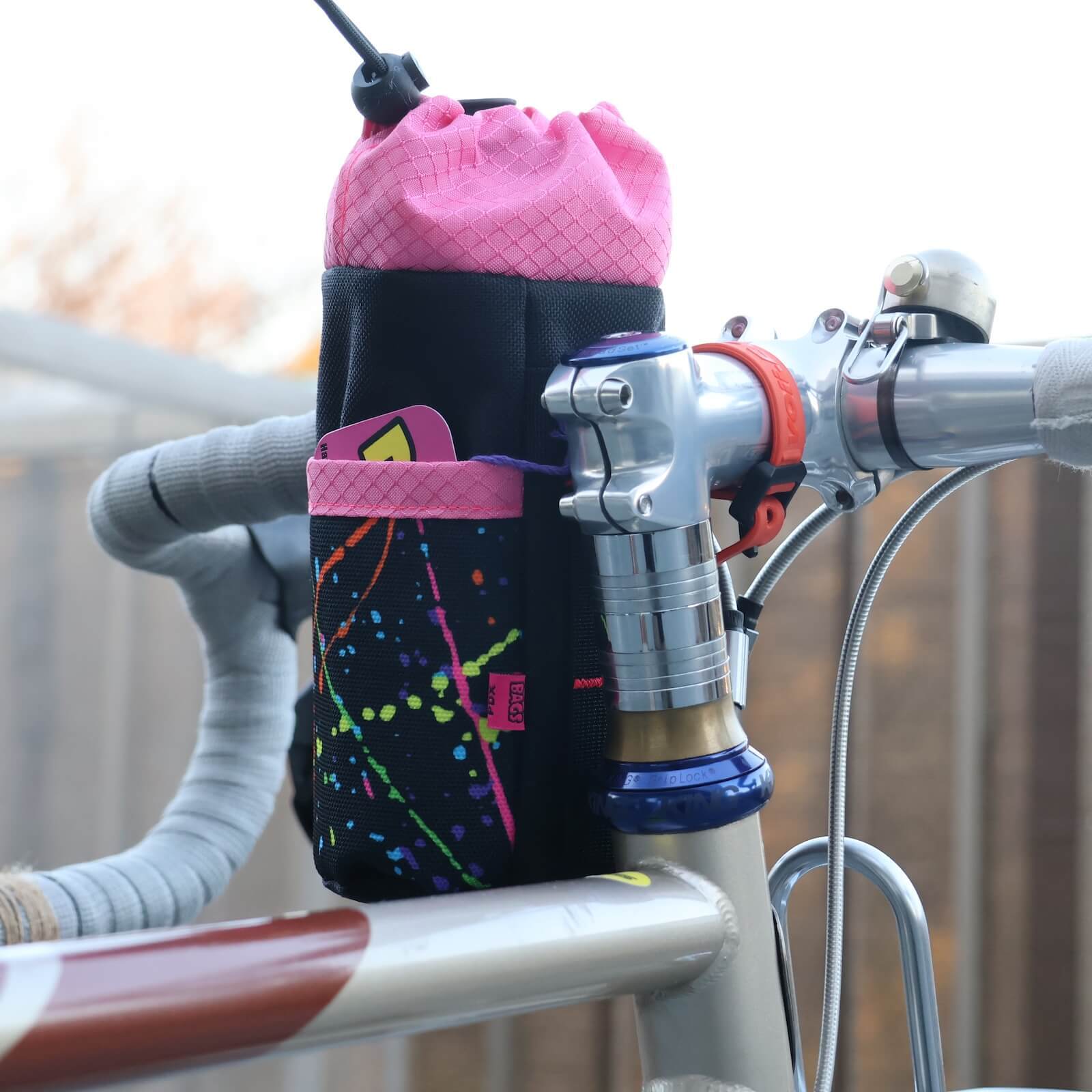 サイズは22oz(約650ml)のウォーターボトルがぴったり収まるサイズです。スナックやスマホなどもすっきり。しっかり固定できる3点留めのアタッチメントで、多くの自転車に簡単に取り付け可能。柔軟なデザインなので、どんなセッティングにも自然になじみ、しっかりフィットします。