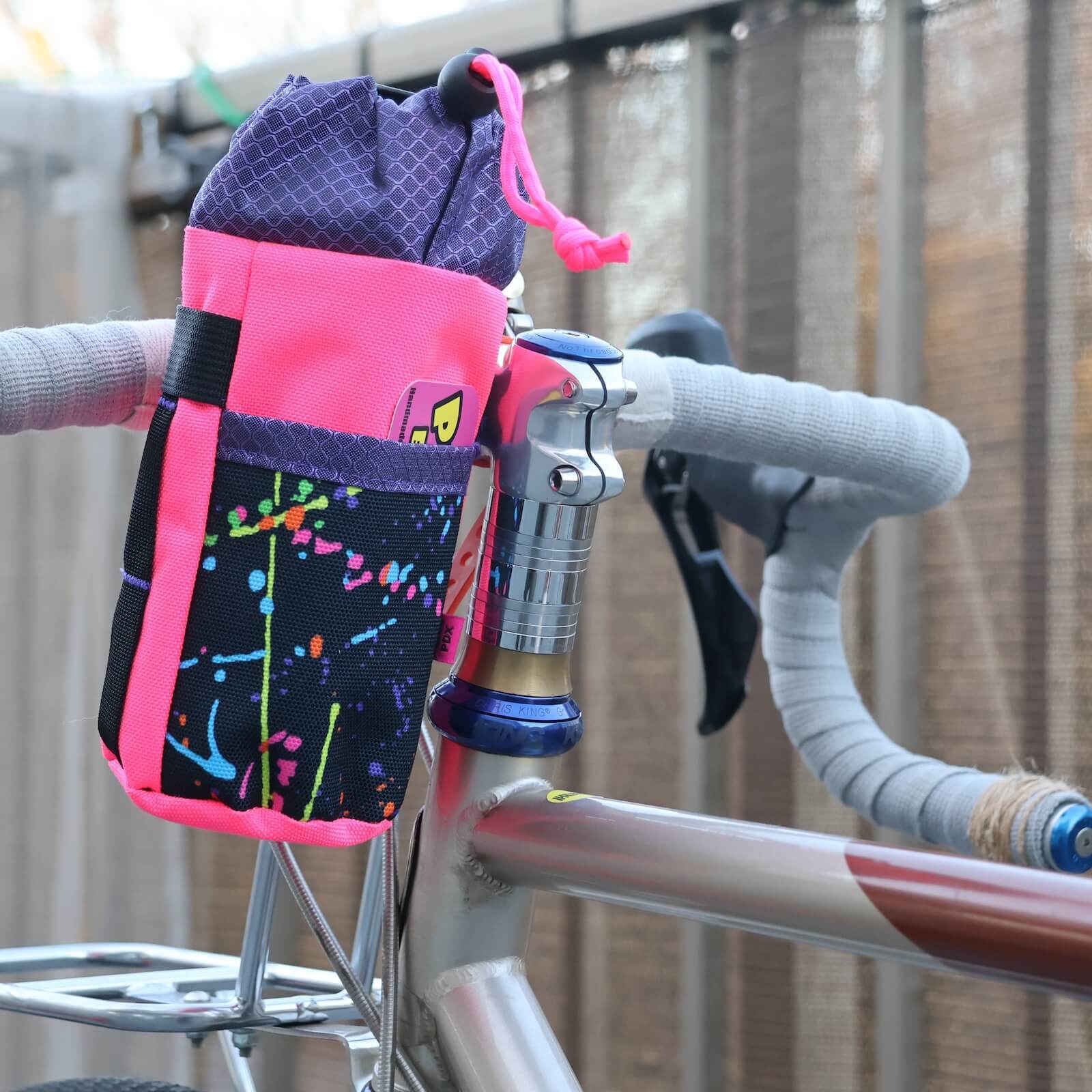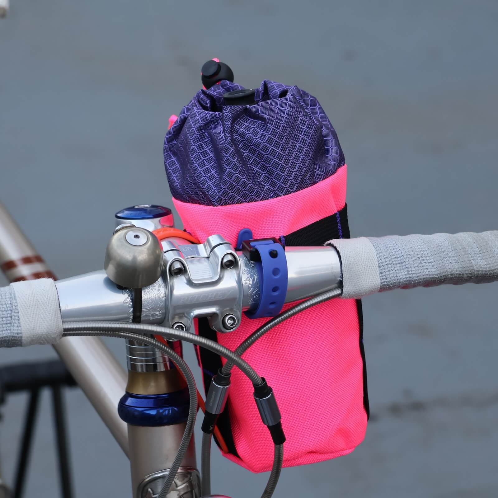 サイズは22oz(約650ml)のウォーターボトルがぴったり収まるサイズです。スナックやスマホなどもすっきり。しっかり固定できる3点留めのアタッチメントで、多くの自転車に簡単に取り付け可能。柔軟なデザインなので、どんなセッティングにも自然になじみ、しっかりフィットします。
