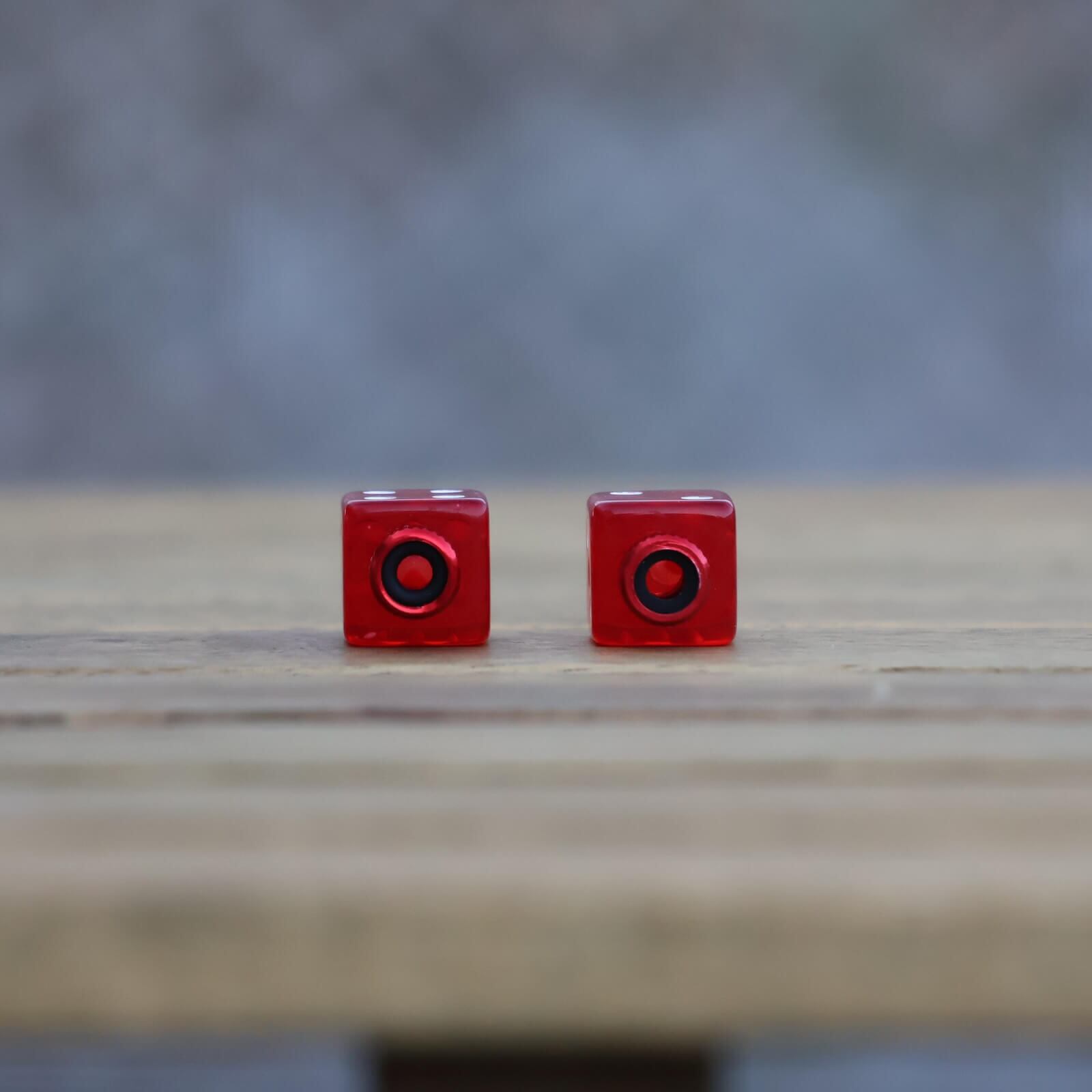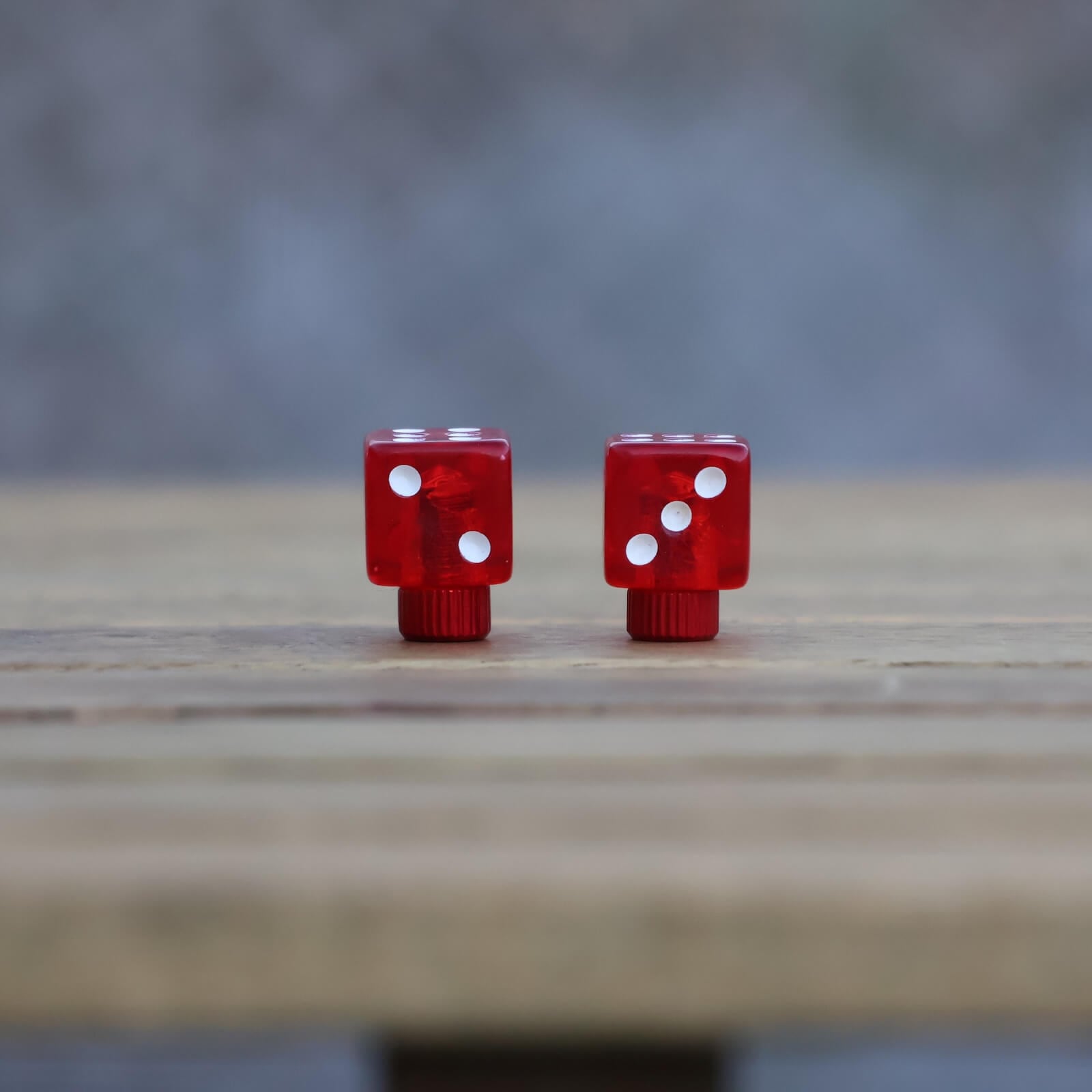 3Dプリンターで作られたダイス型のバルブキャップで、表面にはどこか手触り感が。2個セットのため、1個ずつ分けてお友達とシェアも楽しいかも。