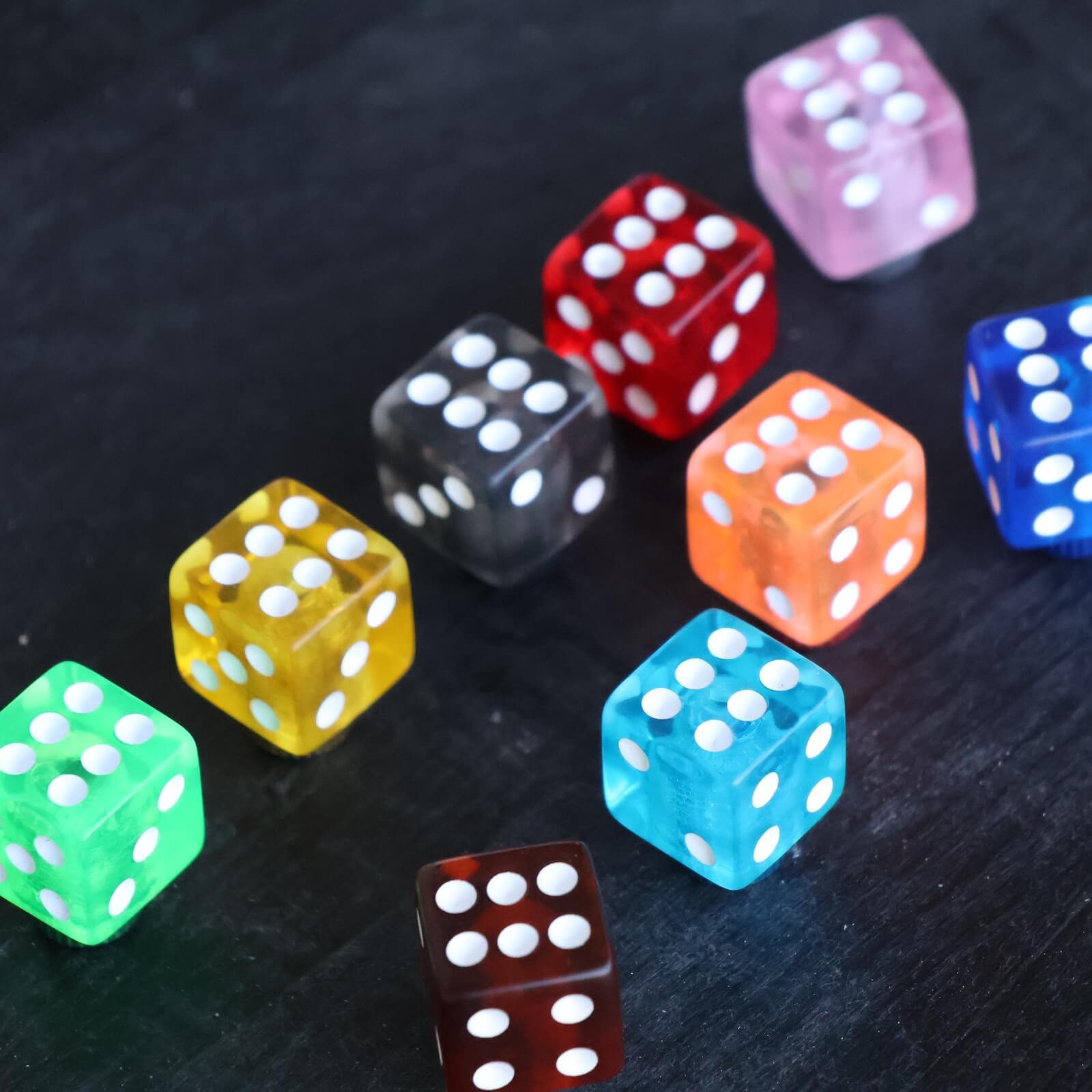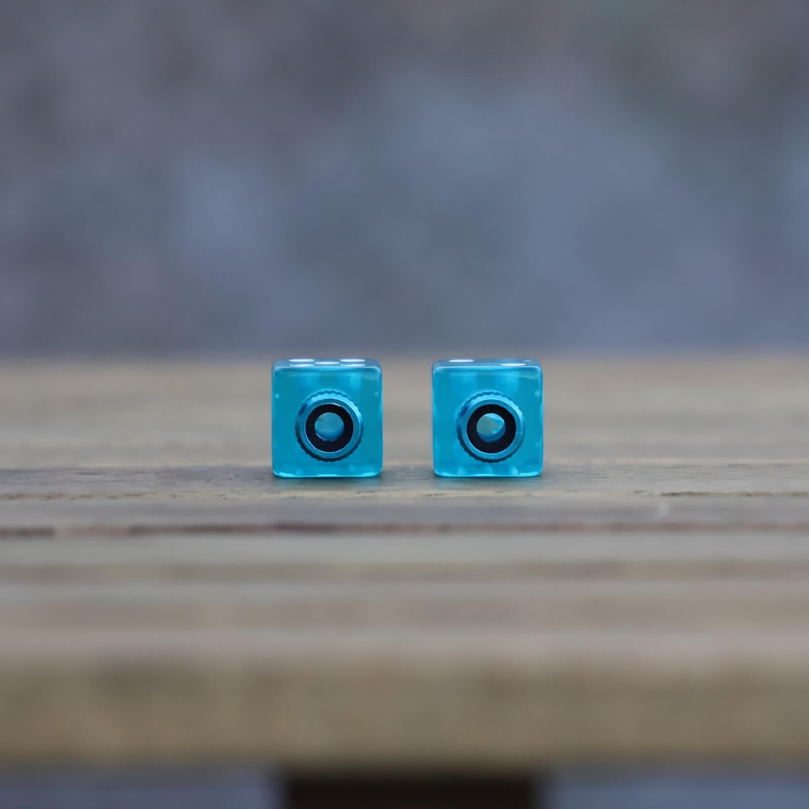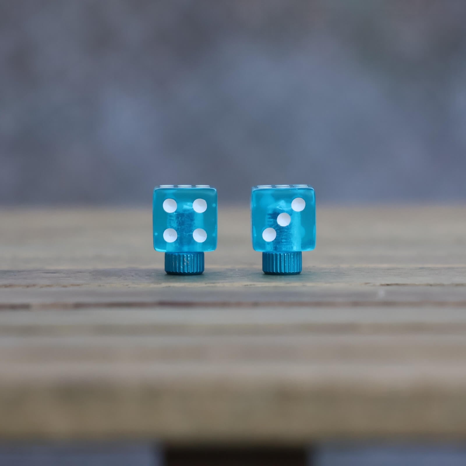 3Dプリンターで作られたダイス型のバルブキャップで、表面にはどこか手触り感が。2個セットのため、1個ずつ分けてお友達とシェアも楽しいかも。