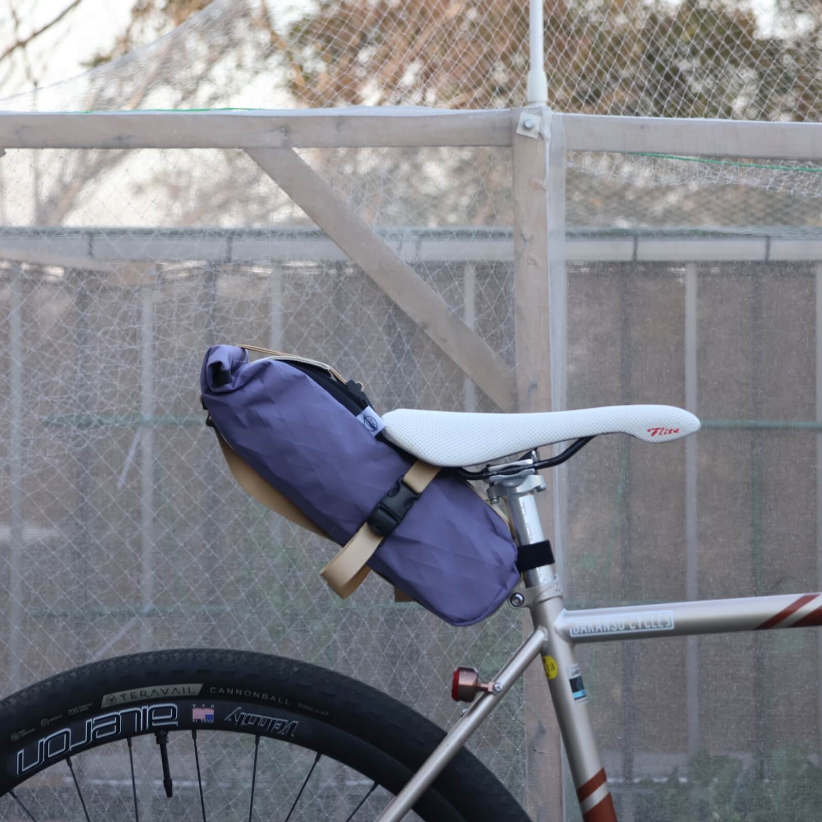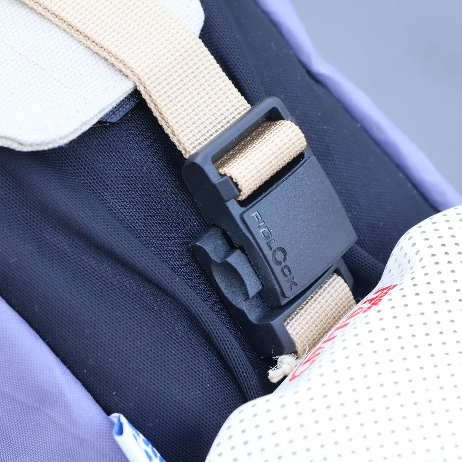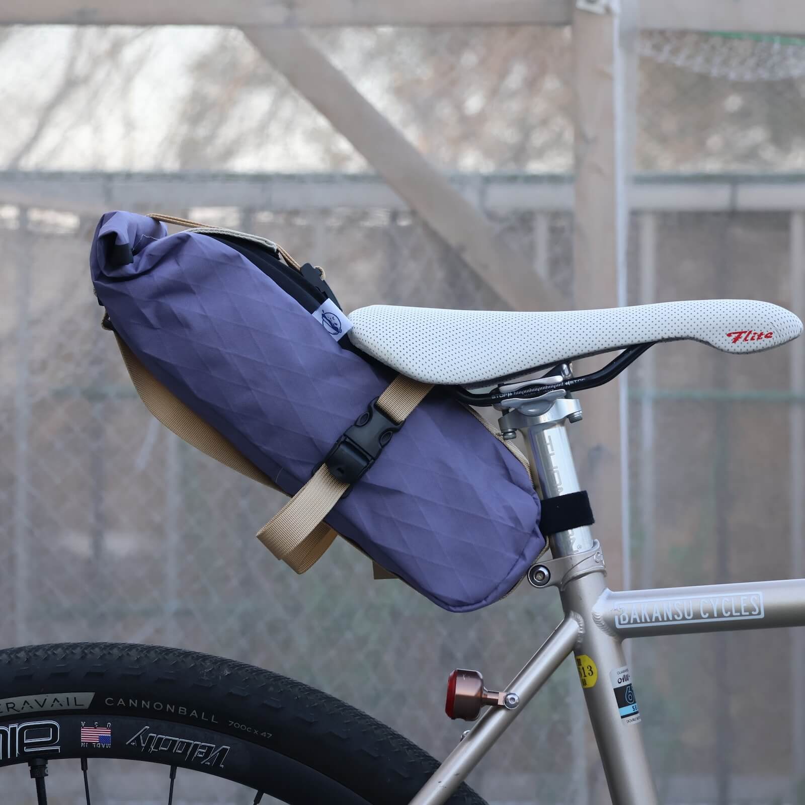 本格的なサドルバッグも作っているBaby Legs Bagsなので作りに妥協なし。でもゴツくならないようにシンプルに作られています。ふたのロールトップには簡単に取り外しができるFIDLOCKを使用。