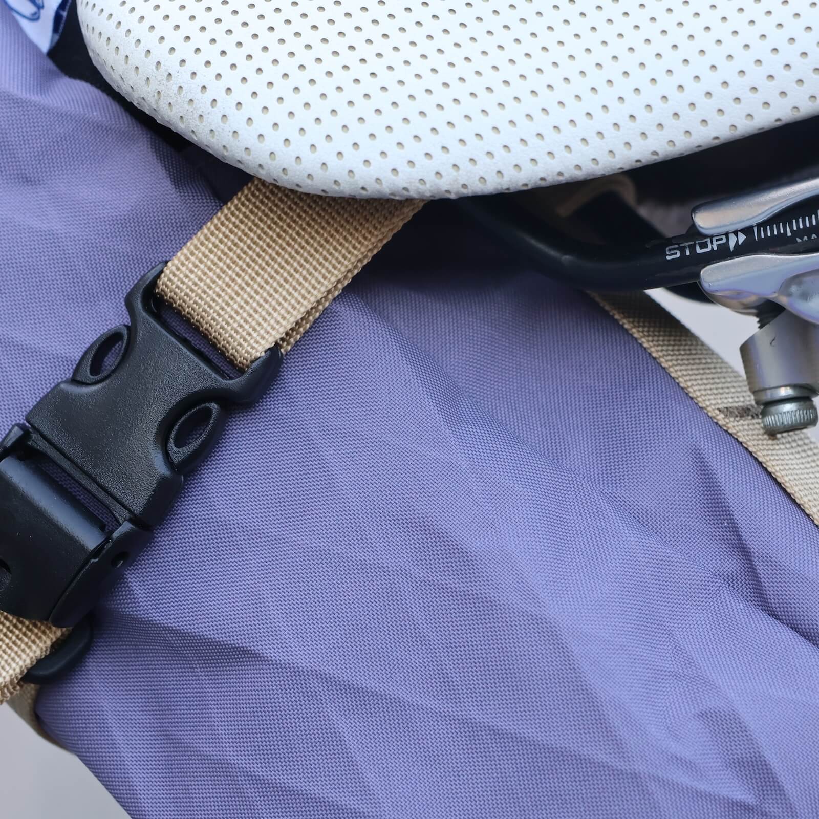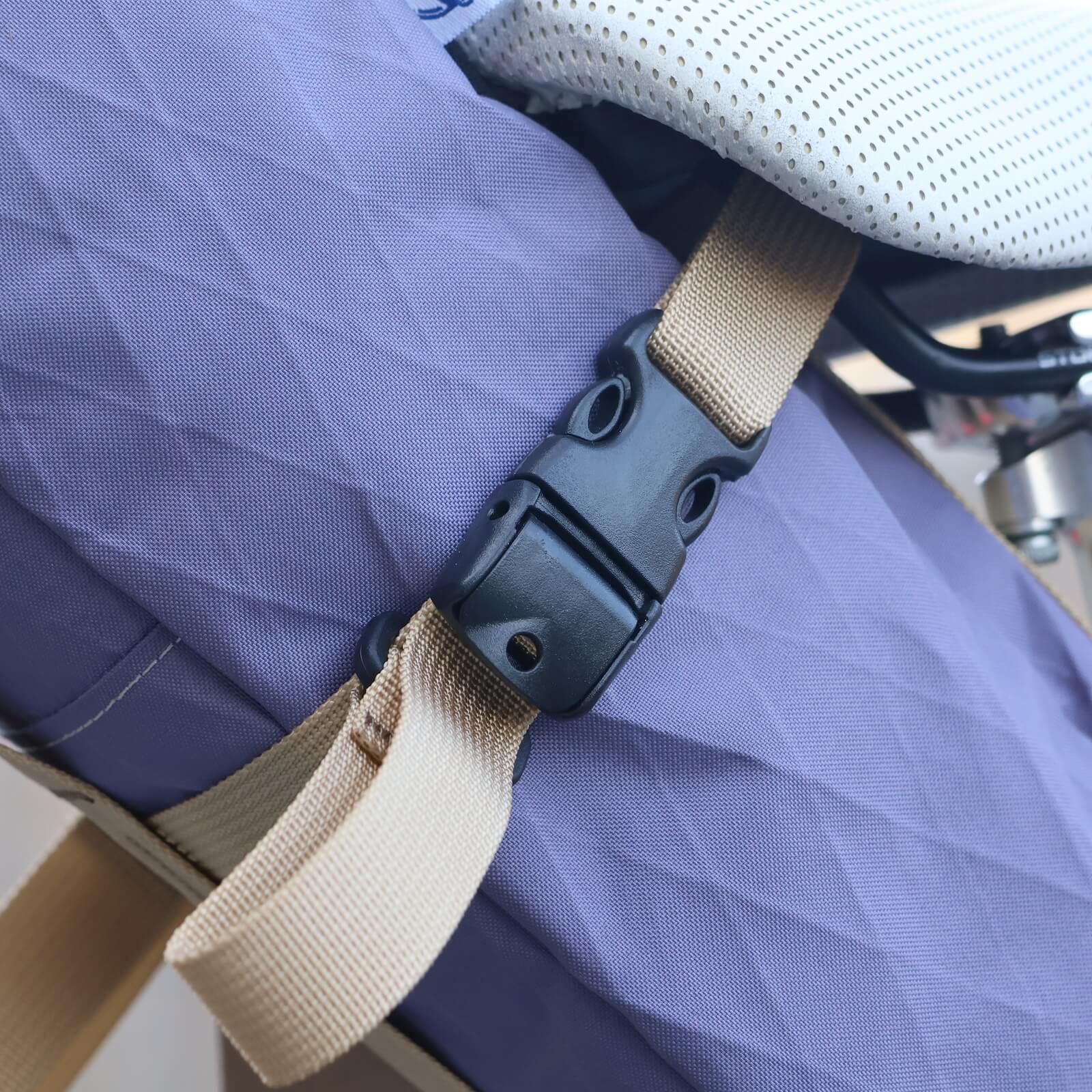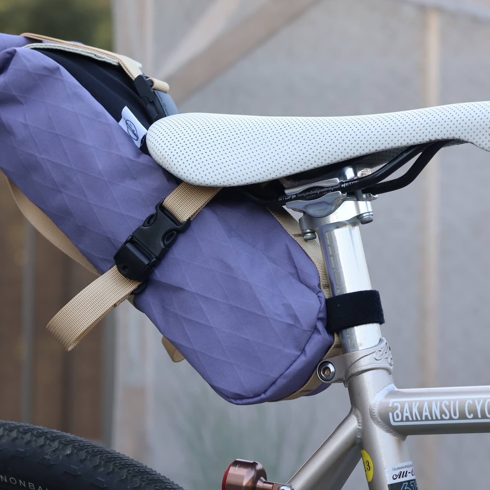 本格的なサドルバッグも作っているBaby Legs Bagsなので作りに妥協なし。でもゴツくならないようにシンプルに作られています。ふたのロールトップには簡単に取り外しができるFIDLOCKを使用。