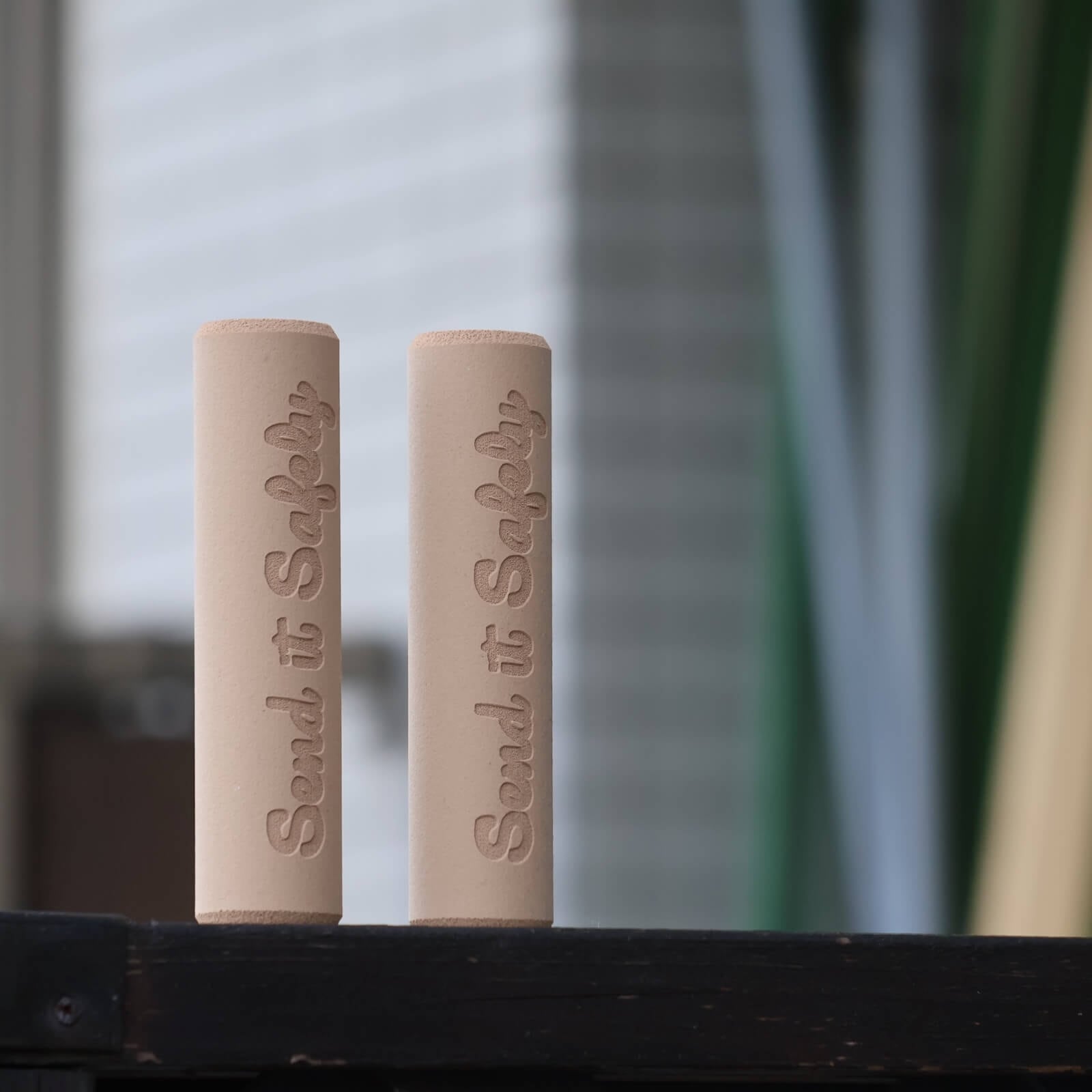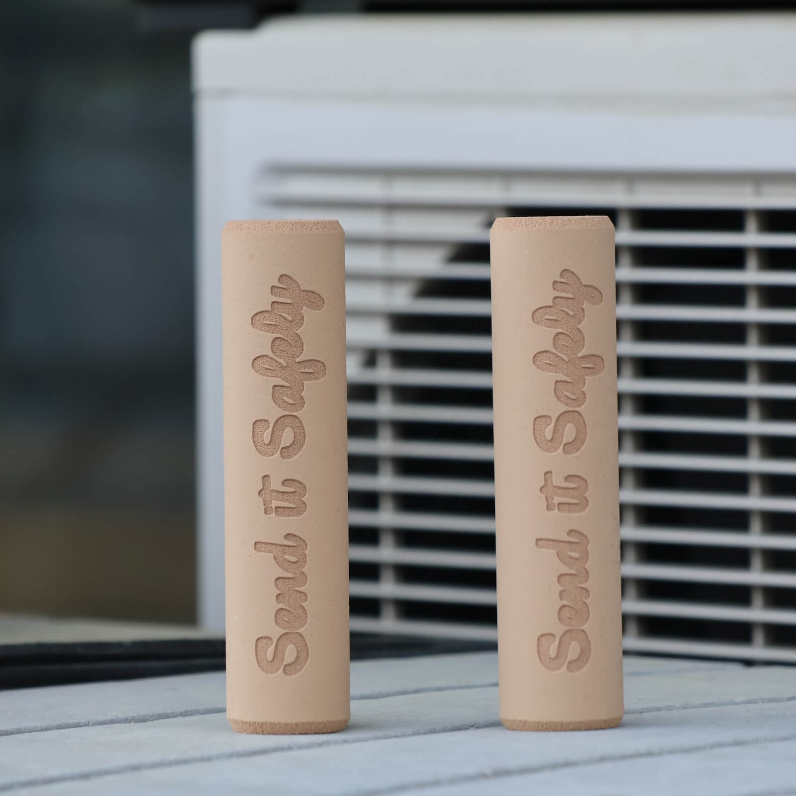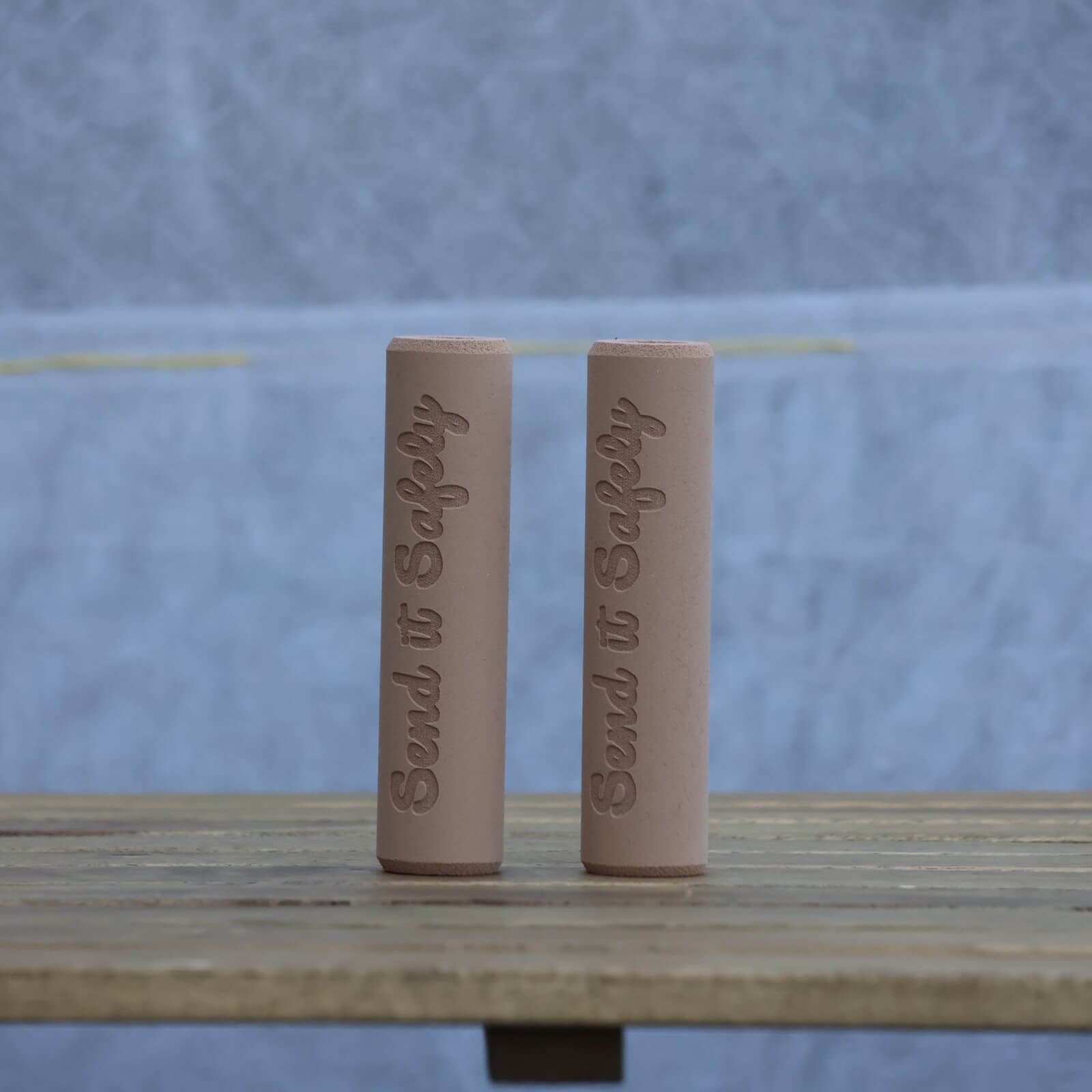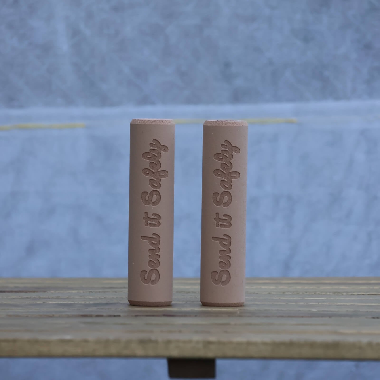 Send It Safelyのロゴが刻印されているESI Grips。太めのExtra chunky。