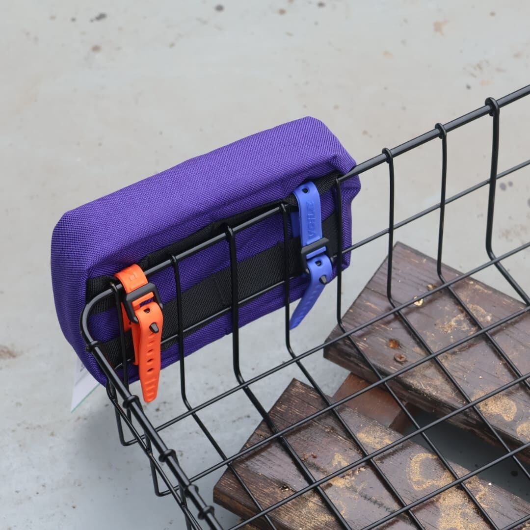 背面にはウェビングベルトが2本あり、付属のベルクロストラップでしっかり固定できます。