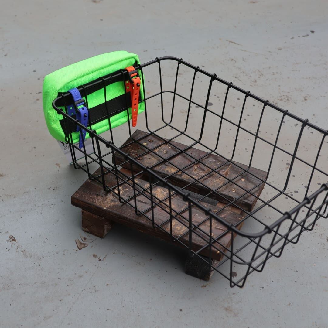 背面にはウェビングベルトが2本あり、付属のベルクロストラップでしっかり固定できます。
