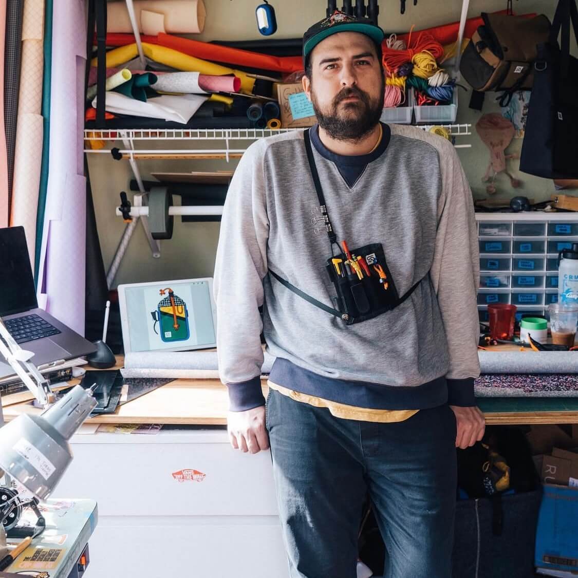 使用していたデジタル迷彩素材が廃盤になり、Bryanはイラストレーターで独自の迷彩柄を作ることにしました。